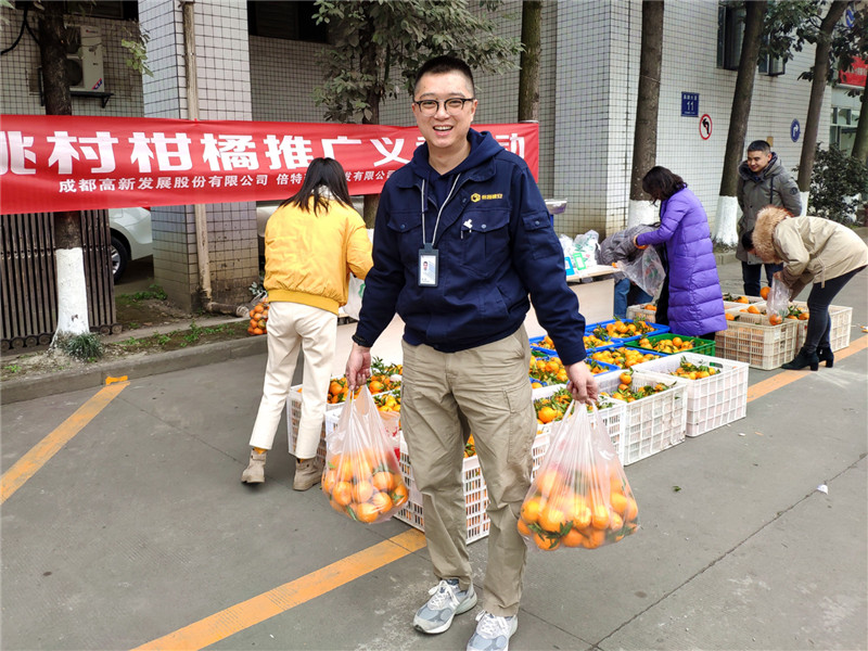 2019年简阳核桃村凭借踏实肯干和悉心栽培,提升了柑橘产量和果品,满树的果实带来丰收喜悦的同时,也给村民们带来“最后一公里”的销售问题。高新发聚焦精准扶贫工作,通过“消费扶贫,以购代扶”帮扶形式,不但解决了村民农产品销路窄问题,打通贫困户与市场“最后一公里路”,将捐赠式“输血”转变为扶持式“造血”,让帮扶对象切实得到收益,有效调动劳动致富积极性,激发村民用勤劳智慧创造美好生活。