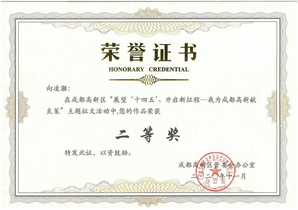 献策“十四五” 共谋新发展 ——高新发展积极参与高新区“十四五”规划征文活动并获评二等奖