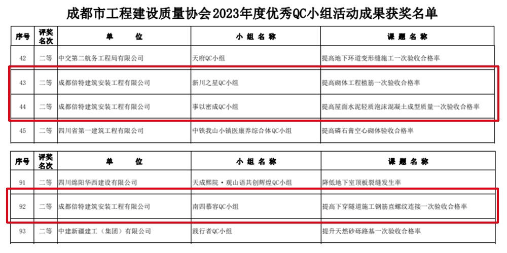 倍特建安论文研究与QC小组活动成果斩获佳绩