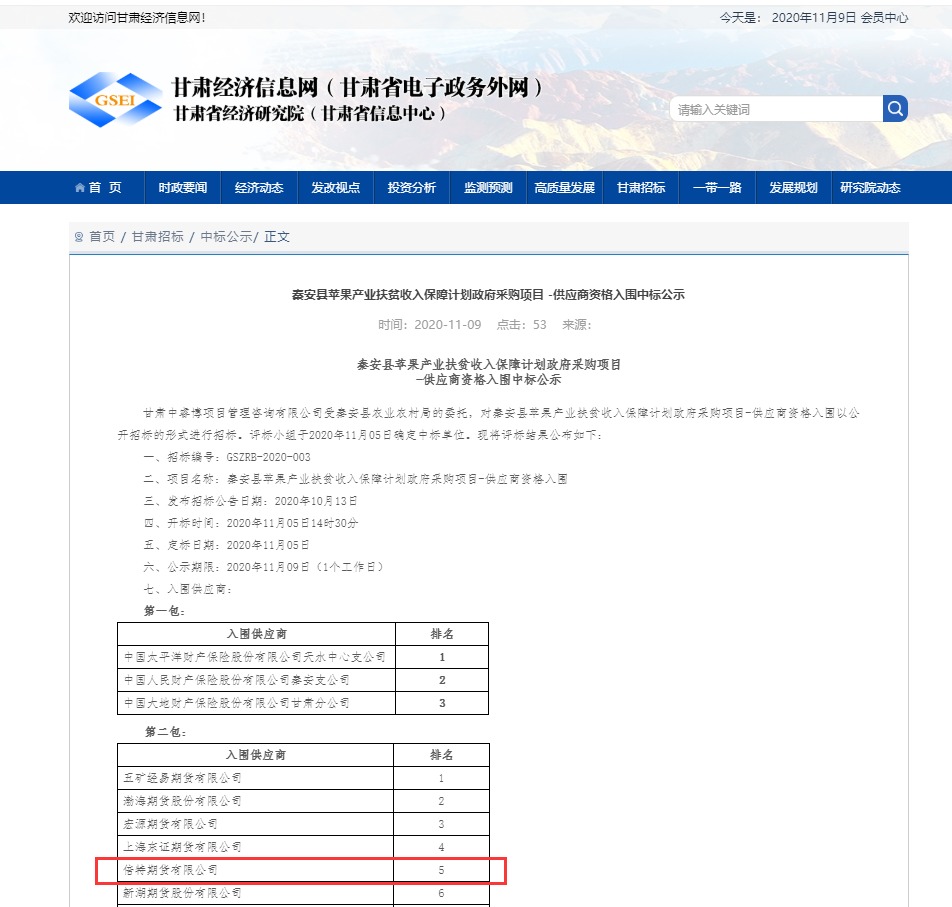 2020年10月13日,甘肃省秦安县农业农村局对秦安县苹果产业扶贫收入保障计划政府采购项目-供应商资格入围以公开招标方式进行采购,招标内容拟中标期货公司的数量为15家。倍特期货有限公司在第一时间得知招标信息后,认真准备招标材料,为秦安县种植苹果的贫困户、小农户和新型农业经营主体精心设计场外期权方案,以更好的规避苹果价格下跌的风险,体现精准扶贫的政治担当。浏览 : 28657分享